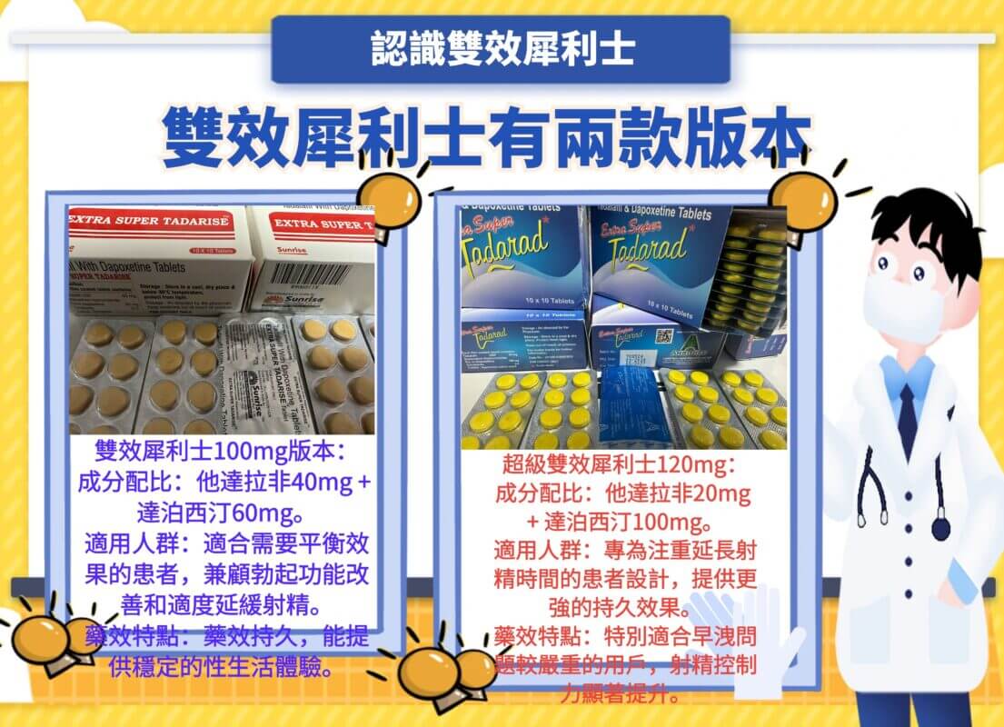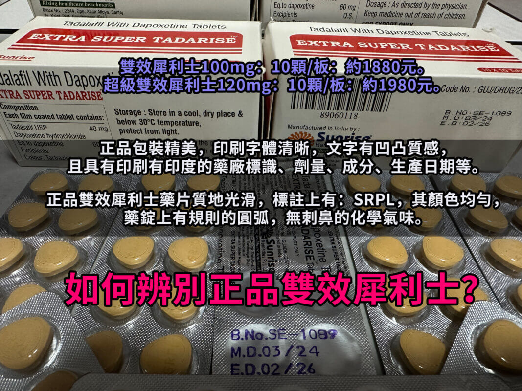 雙效犀利士(Super Tadarise)是一款結合了他達拉非(Tadalafil)助勃與達泊西汀(Dapoxetine)早洩的藥物,專為同時治療勃起功能障礙(ED)和早洩(PE)設計。由於其強大的雙重效果,許多男性對此藥物需求高漲。然而,如何確保購買到正品雙效犀利士,成為一個重要的問題。