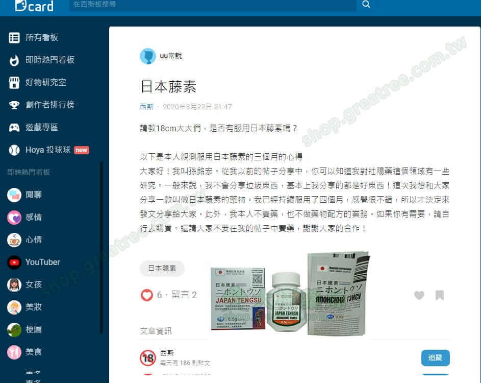 14 7 月 日本藤素 日本藤素dcard:鄉民親測服用日本藤素心得分享!效果超讚 作者: 普健生醫 2024 年 8 月 23 日 0 在購買藥品時,我們通常會查閱相關信息或者了解別人對該藥品的評價,這樣才能放心購買。今天我在Dcard討論版上發現了一篇關於四代日本藤素的帖子,讓我們來看看這篇帖子都講了些什麼!下麵我將和大家分享關於四代日本藤素Dcard心得分享以及服用該藥品後的真實評價。 ... 繼續閱讀