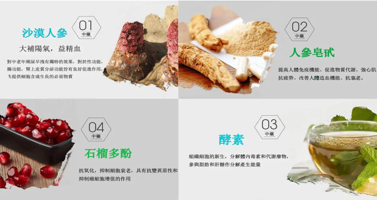 它最大的特色是「中西合併、雙效調理」,既能補腎養氣、促進血流循環,又能快速恢復精力與活力。