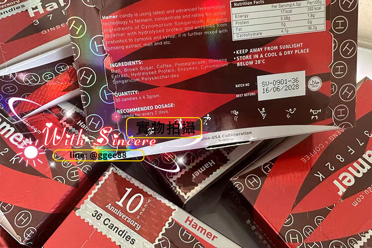 Hamer 汗馬糖 十週年紀念版,是馬來西亞的原裝進口人氣補力糖,一盒內含 36 顆,每顆僅需幾十元,即可享有 2~3 天持效的精力與體力補給。