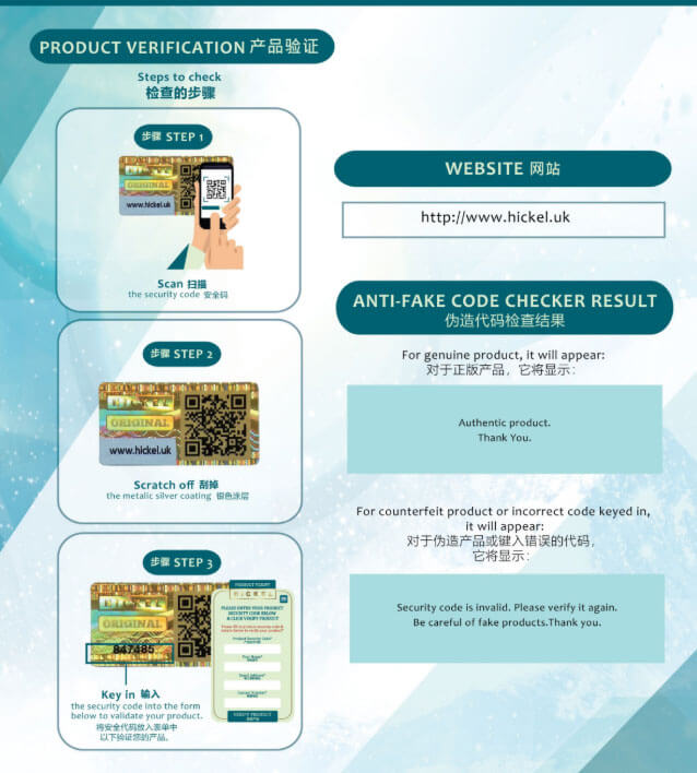 包裝盒印有 「Hickel 英國原創配方」 與 「Made in Malaysia」 字樣。
