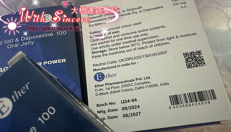 | 成分 | Sildenafil 100mg + Dapoxetine 100mg |