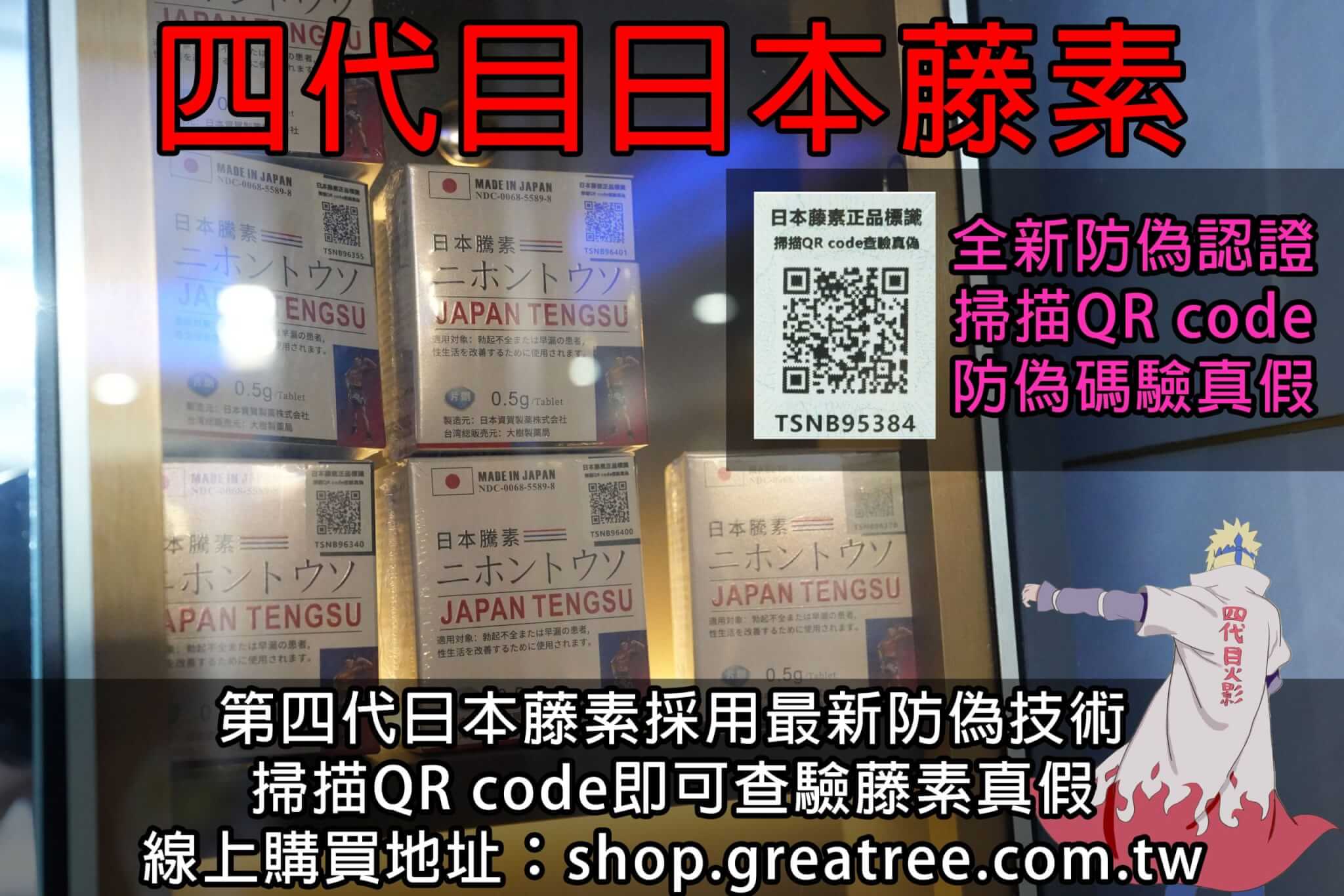 在過去幾年,市面上售賣的都是第一代/二代日本藤素,因為仿冒品過多,後續升級為第三代日本藤素,直接在防偽標籤上刻印了防偽碼,每一盒藤素僅有一個可查驗的防偽碼,一碼一盒一查。才得以杜絕偽藥!