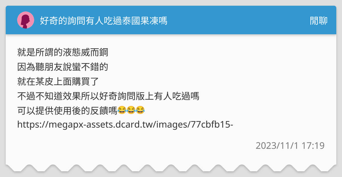 - 許多使用者在Dcard上分享了自己服用泰國果凍威而鋼的經驗。大部分人表示,這款藥物能夠有效改善勃起功能,幫助他們恢復性生活的自信。